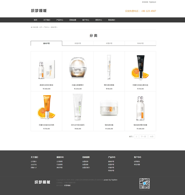 模板編號(hào):     B1600 響應(yīng)式化妝品防嗮霜商城織夢(mèng)dedecms模板(自適應(yīng)