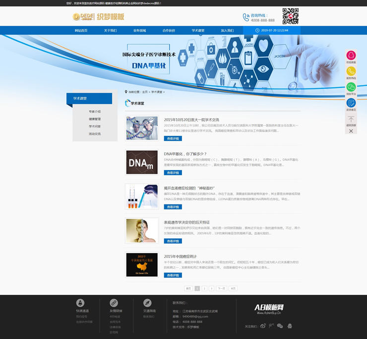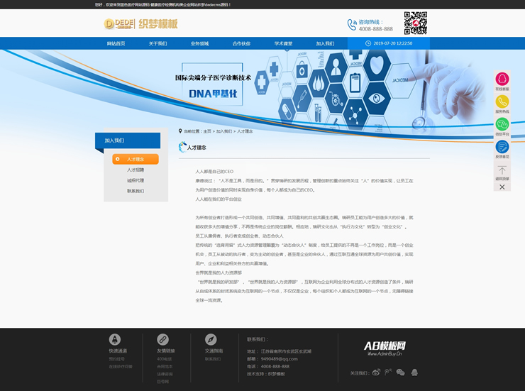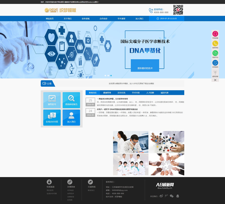 藍色醫(yī)療網(wǎng)站織夢源碼健康醫(yī)療檢測機構(gòu)類企業(yè)