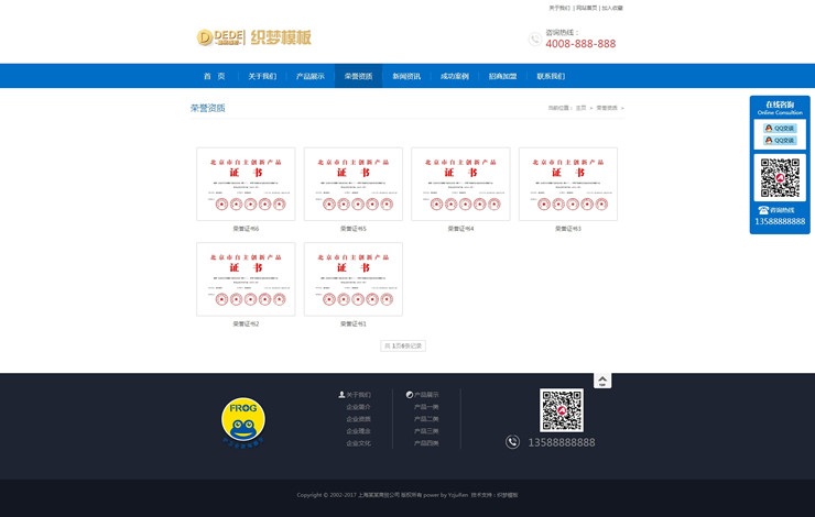 一、整套模板純手寫div+css代碼,符合W3C標準,完美兼容 IE6/7/8/9/10、Firefox、Chrome、Opera、Safari、360瀏覽器等主流瀏覽器,經測試無錯位,加載速度飛快。