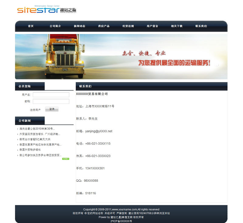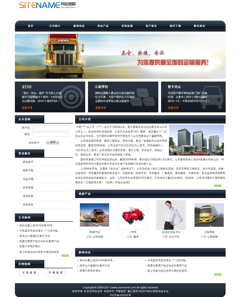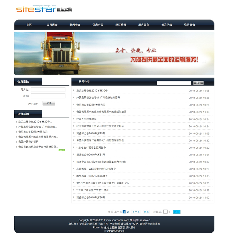模板編號:     S1172 自由貿(mào)易運(yùn)輸行業(yè)貨運(yùn)物流建站模板