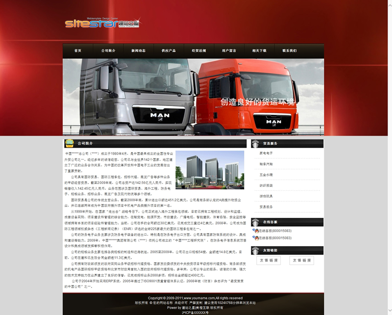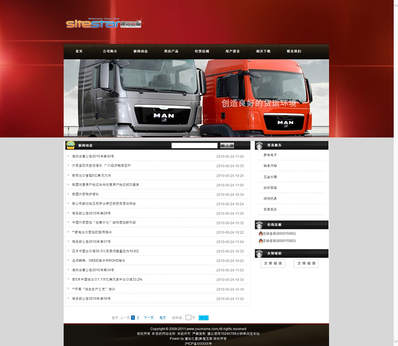 模板編號:     S1180 汽車貨運企業(yè)物流貿(mào)易貨運公司建站模板