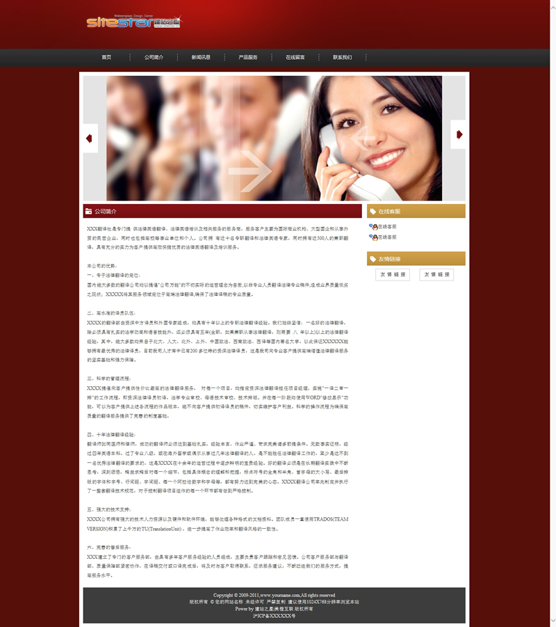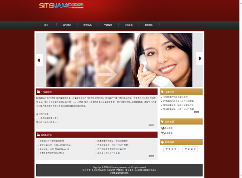 模板編號(hào):     S1202 國(guó)際語(yǔ)言翻釋公司法律咨詢服務(wù)建站模板