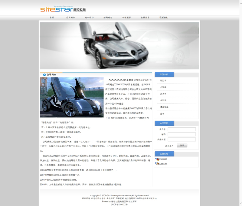 模板編號:     S1287 汽車銷售服務(wù)商二級經(jīng)銷商4S店建站模板