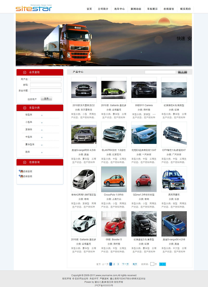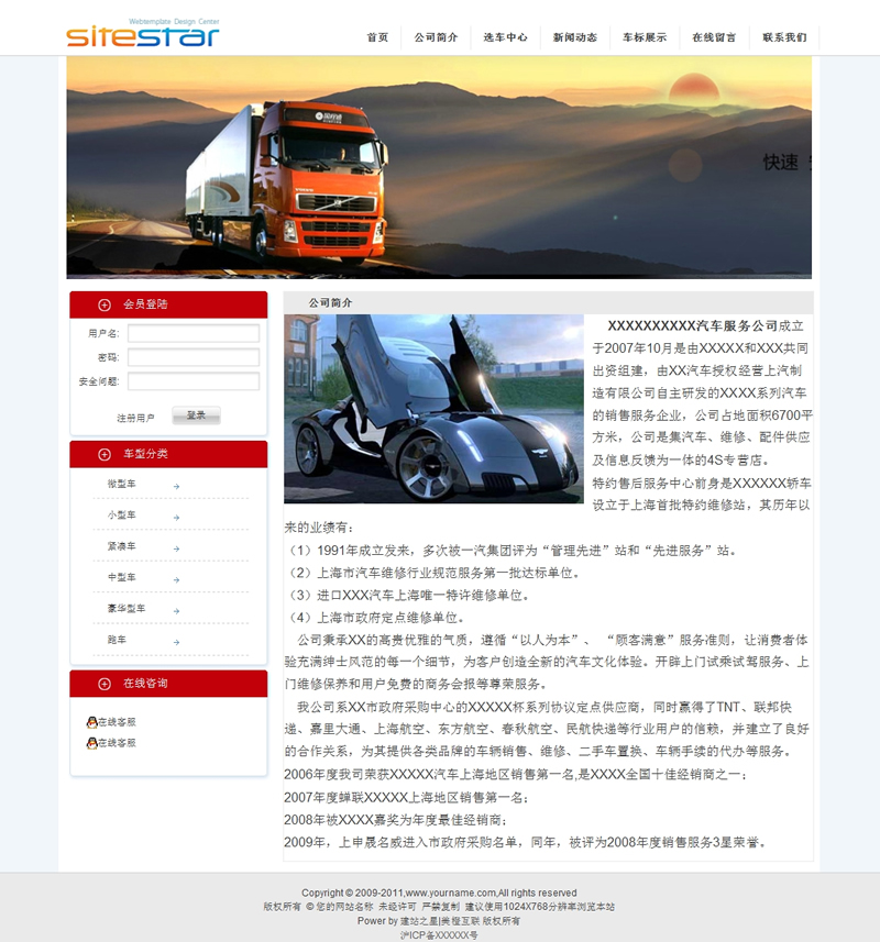 模板編號:     S1289 轎車銷售公司汽車經銷商4S店運營商建站模板