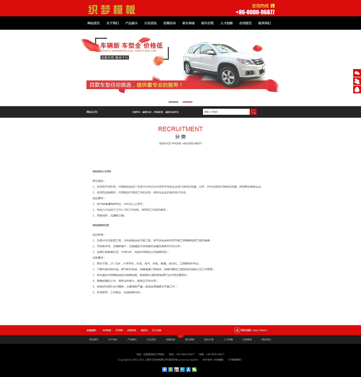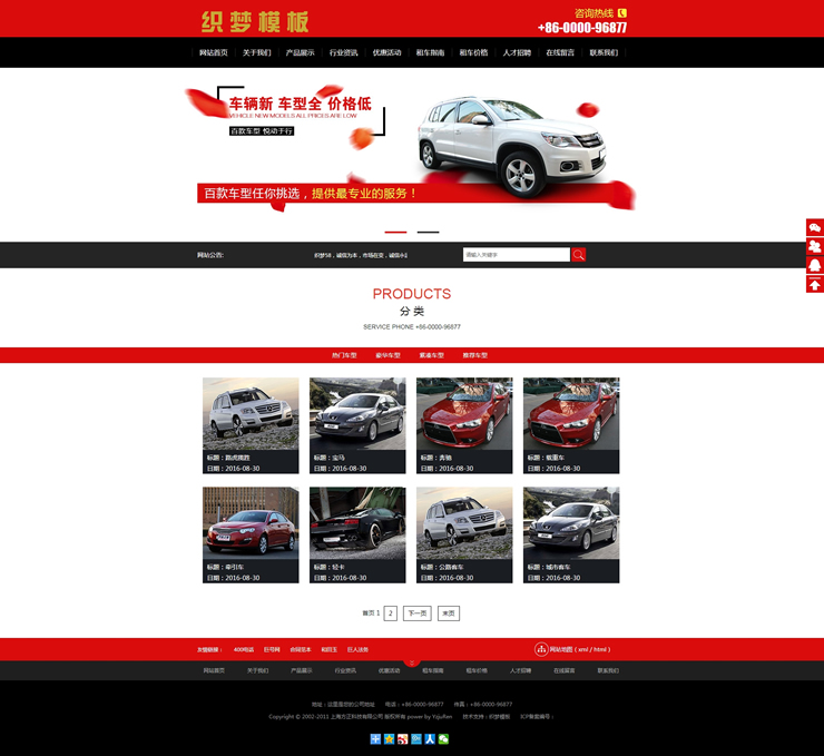 主頁(yè) > 網(wǎng)站建設(shè) > 網(wǎng)站模板 > 汽車、金融、工商、財(cái)務(wù) > 汽車租賃服務(wù)類網(wǎng)站織夢(mèng)模板(帶手機(jī)移動(dòng)端)