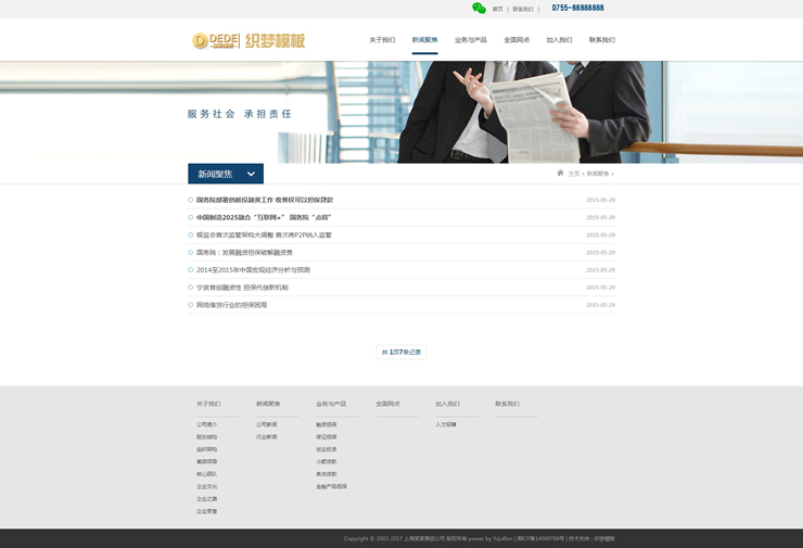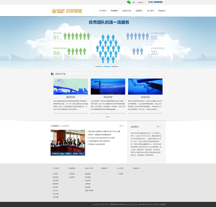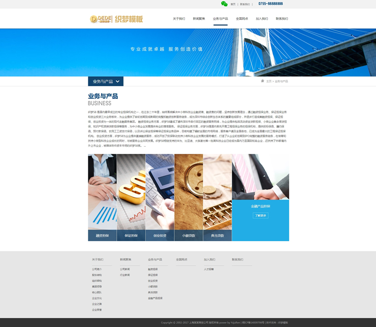 模板編號:     B1682 簡潔投資擔保類企業(yè)通用織夢模板