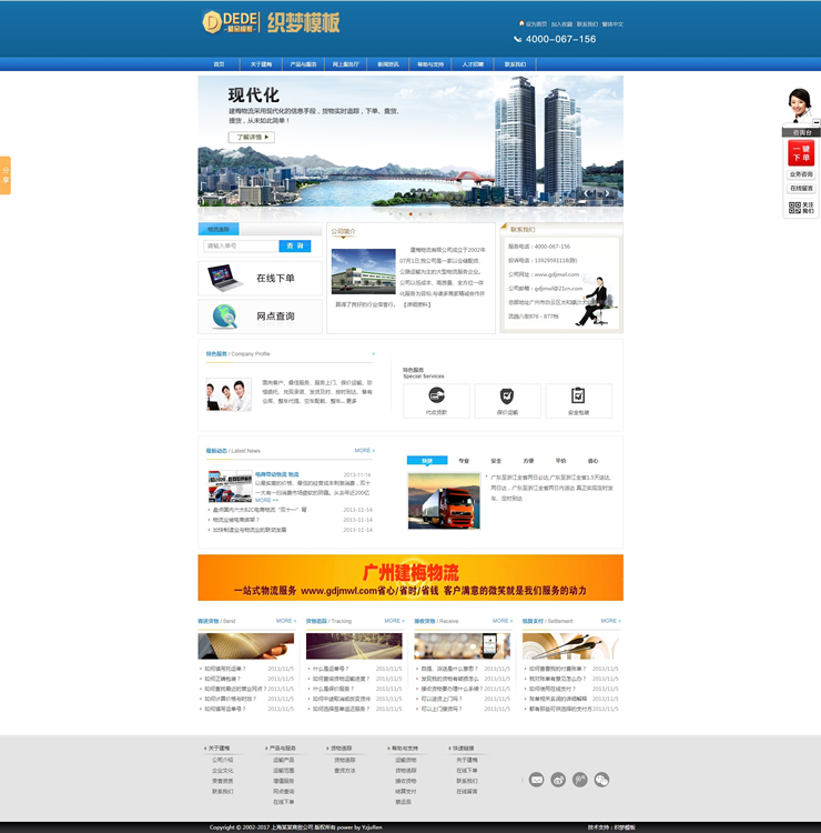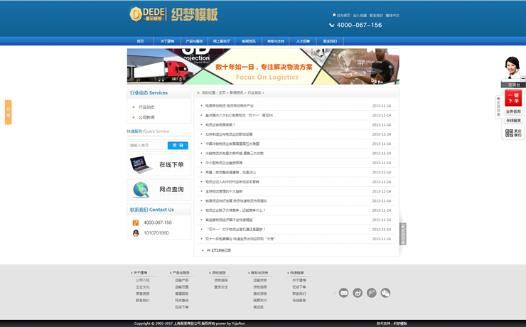 模板編號:     B1725 物流貨運類企業(yè)通用織夢源碼