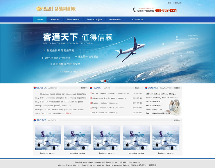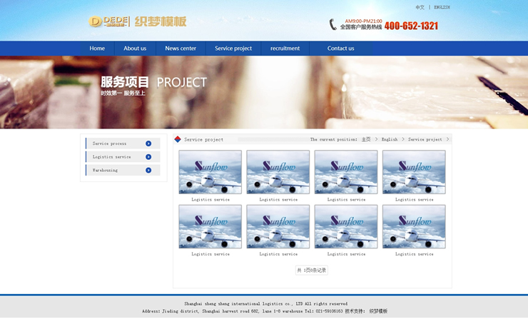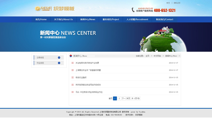 中英版藍(lán)色大氣物流公司企業(yè)網(wǎng)站整站織夢模板