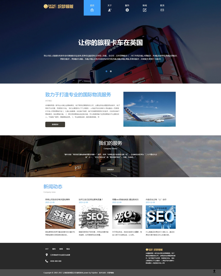 HTML5自適應(yīng)響應(yīng)式國際貨運(yùn)物流公司網(wǎng)站織夢模板