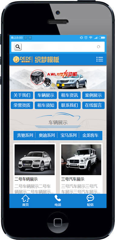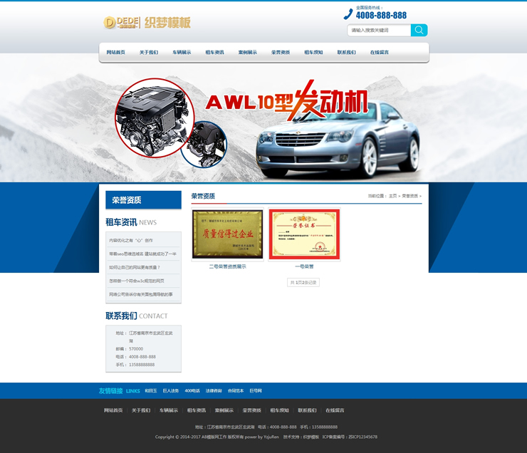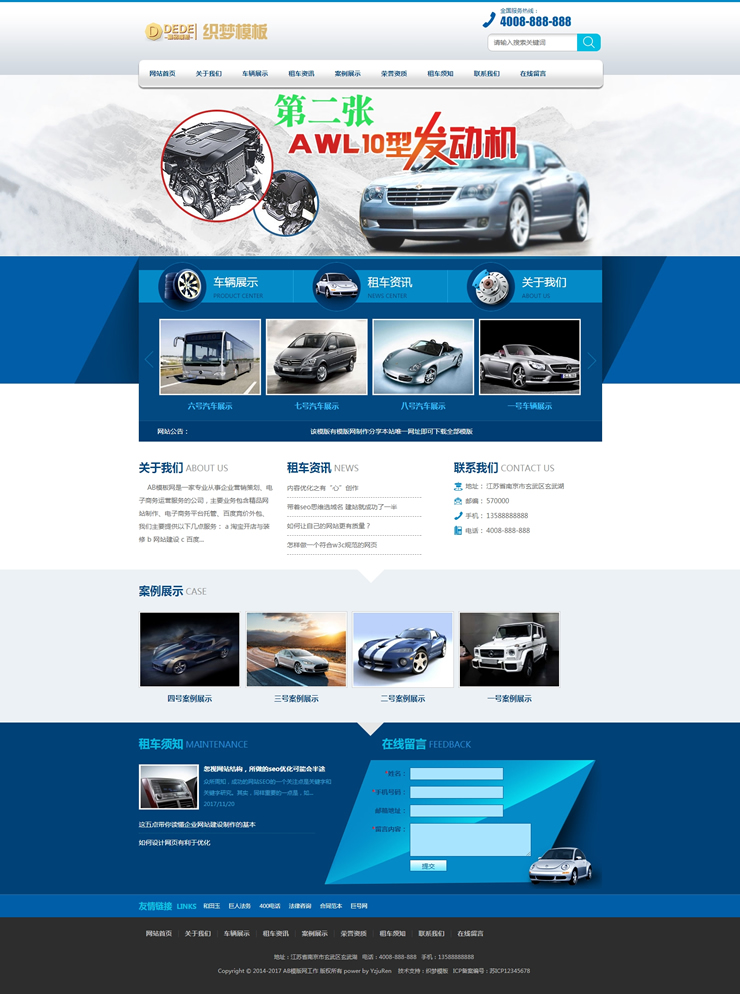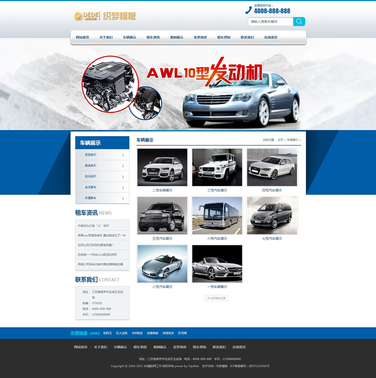 模板編號:     B2317 汽車零配件生產(chǎn)維修保養(yǎng)類織夢模板藍色汽車租
