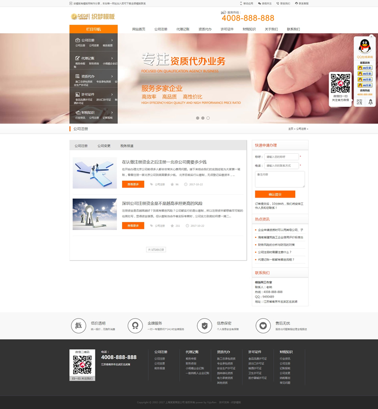 模板編號:     B2366 財稅代理公司注冊代理記賬網(wǎng)站織夢模板財務(wù)外