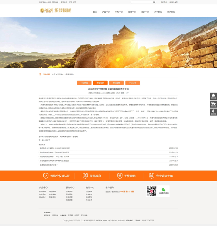主頁 > 網(wǎng)站建設(shè) > 網(wǎng)站模板 > 汽車、金融、工商、財務(wù) > 響應(yīng)式財富管理保險類網(wǎng)站織夢模板HTML5保險理財