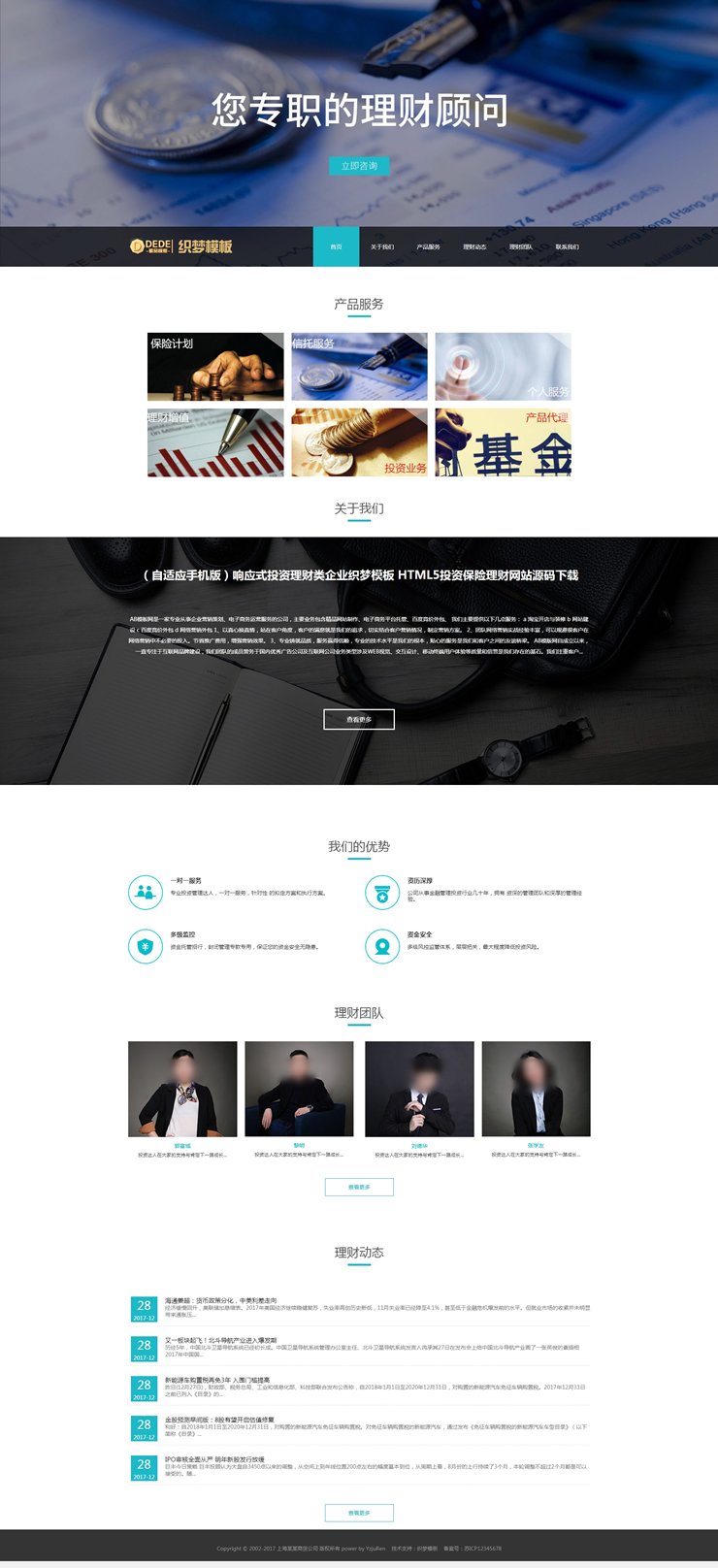 響應式投資理財類企業(yè)織夢模板HTML5投資保險理財