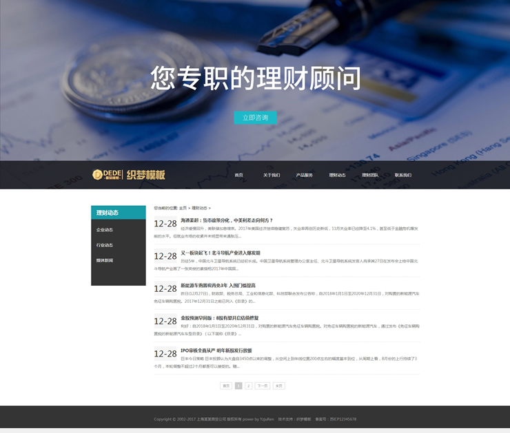 主頁 > 網站建設 > 網站模板 > 汽車、金融、工商、財務 > 響應式投資理財類企業(yè)織夢模板HTML5投資保險理財