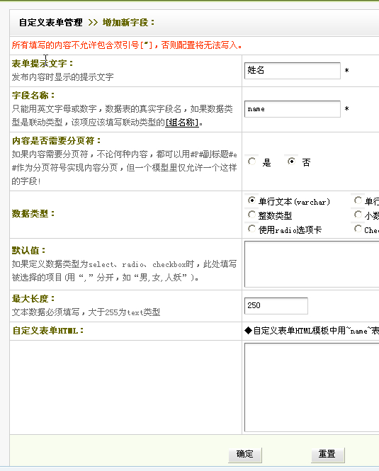 第五步:進(jìn)入“添加新字段”界面后,根據(jù)您自己的需求添加好您的字段信息,如圖: