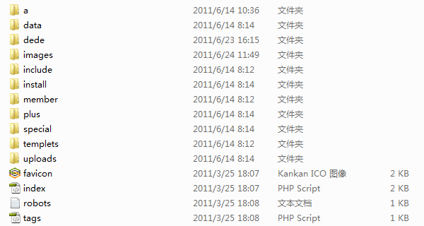 “dede” 里面存放的是dedecms的后臺文件,對于后臺部分的開發(fā)都會使用這里面的文件,例如:開發(fā)模型、模塊和小插件等等。這個(gè)部分將會在具體的開發(fā)過程中,逐步介紹。