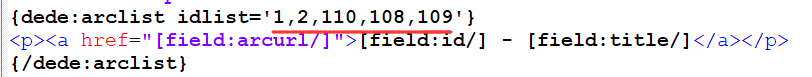 {dede:arclist idlist=’1,2,110,108,109′ orderby=’idlist’}