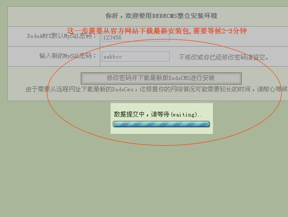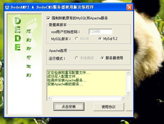 5.DedeAMPZ自動從官方網(wǎng)站下載最新版本的DedeCMS自動執(zhí)行安裝;