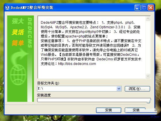 DedeAMPZ 是直接整合PHP + Apache + MySql 的服務器環(huán)境管理軟件,操作十分傻瓜化,適合初中級水平的站長使用。