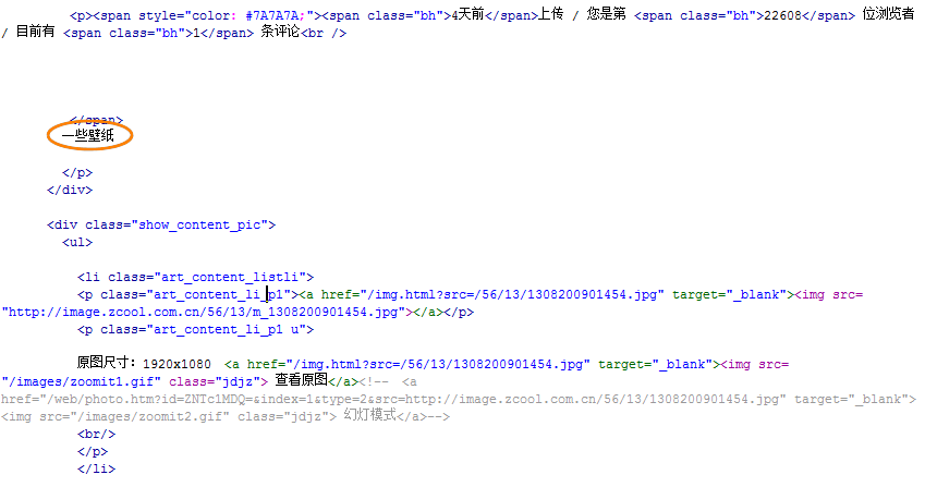 (a)在打開的內(nèi)容頁面的源代碼中,找到內(nèi)容的開始部分“一些壁紙”,如圖31所示,