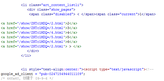 (a)在頁面的源代碼中,找到分頁代碼的開始部分和結(jié)束部分,如(圖23)所示,