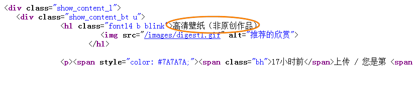 首先,打開“預(yù)覽網(wǎng)址“的頁面并單擊右鍵,選擇”查看源代碼“,找到文章標(biāo)題” 高清壁紙(非原創(chuàng)作品)“,如(圖25)所示,