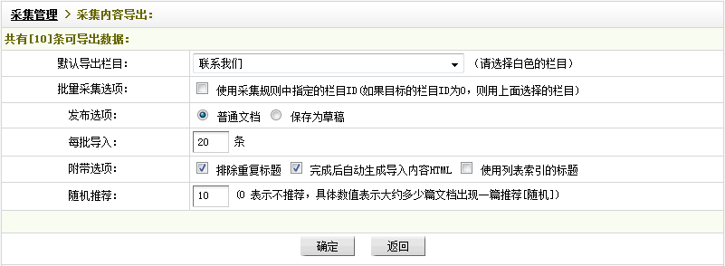 “默認導出欄目“:設置要把采集到的內容導入到的欄目