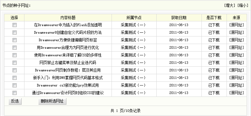 采集結束后,再次單擊“查看種子網址”或者單擊頁面右上角的“查看已下載”,便可看到已采集到的網址信息,如(圖37)所示,