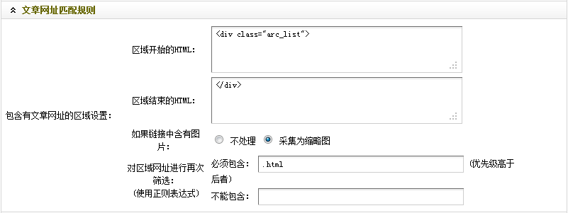 “如果鏈接中含有圖片”:設置對鏈接中含有圖片的處理方式,有不處理和采集為縮略圖可選??筛鶕?jù)實際需要選擇。