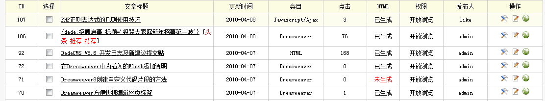 選擇一篇Html欄目下的文章,點預(yù)覽(右邊的那個綠色小球)