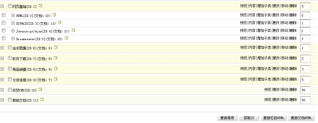 如果你安裝的數(shù)據(jù)和我是同一版本,就會知道網(wǎng)頁基礎(chǔ)是個一級欄目,底下組織了很多文章。
