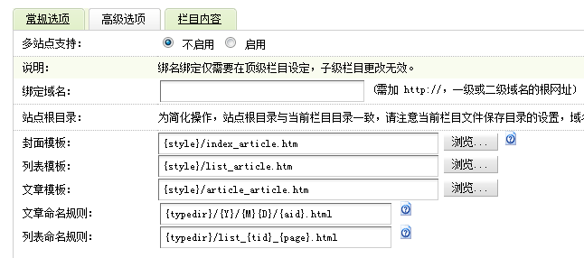 依此類推,如果在常規(guī)選項中欄目屬性是最終列表欄目,高級選項中封面模板為{style}/list_article.htm,則會調(diào)用list_article.htm作為模板,文檔模板也依此類推。