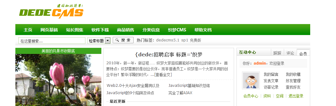 打開dedecms的網(wǎng)站后臺管理(對了,請先安裝安裝數(shù)據(jù)體驗包,這樣才有測試數(shù)據(jù))