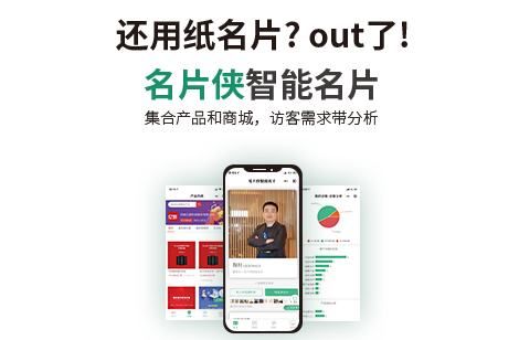 不同于紙名片僅僅展示基本信息與聯系方式,名片俠人工智能名片在名片職能的基礎之上,更集合了產品與商城、訪客數據與分析、企業(yè)智能銷售管理系統等顛覆性的功能。它不再是一款簡簡單單的名片,而是擁有了核武器一般的爆發(fā)力,讓企業(yè)管理與銷售踏上了互聯網+人工智能的時代列車。