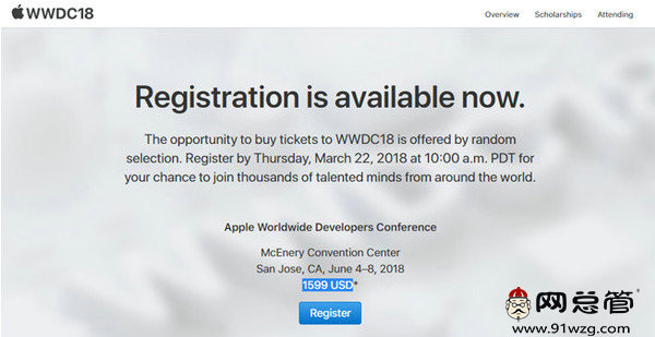 目前,開(kāi)發(fā)者已經(jīng)可以進(jìn)入官網(wǎng)進(jìn)行注冊(cè)。蘋果官方表示將在太平洋時(shí)間3月22日星期四上午10:00開(kāi)放注冊(cè),由于名額有限,蘋果和之前一樣采用彩票系統(tǒng)抽出WWDC 2018的與會(huì)者。據(jù)悉,WWDC 2018的門票價(jià)格為1599美元,開(kāi)發(fā)者必須在太平洋時(shí)間3月13日上午10:00點(diǎn)前加入Apple開(kāi)發(fā)者計(jì)劃或成為Apple開(kāi)發(fā)者企業(yè)計(jì)劃的成員才能擁有抽簽資格,抽簽結(jié)果將在太平洋時(shí)間3月23日下午5點(diǎn)之前公布。