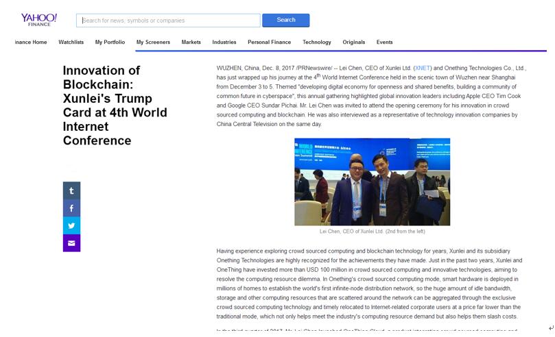 12 月 8 日,美國雅虎財經(jīng)等多家海外媒體報道了迅雷CEO、網(wǎng)心科技CEO陳磊參加以“發(fā)展數(shù)字經(jīng)濟促進開放共享――攜手共建網(wǎng)絡空間命運共同體”為主題的第四屆世界互聯(lián)網(wǎng)大會,并在會后接受CCTV采訪的事件。迅雷深耕云計算與區(qū)塊鏈技術多年,自 2014 年至今,迅雷已投入超過 1 億美元用于“共享計算”的技術創(chuàng)新,旨在解決社會計算資源緊張和計算成本居高不下的矛盾。網(wǎng)心科技將共享經(jīng)濟理念引入云計算行業(yè)后,通過迅雷賺錢寶、玩客云收集了無數(shù)家庭中的閑置帶寬,從而打造出全球首個“無限節(jié)點式內容分發(fā)網(wǎng)絡”,并借助多項創(chuàng)新技術,將海量帶寬資源以超低成本輸送至互聯(lián)網(wǎng)企業(yè),解決了云計算能力的天花板困境。共享計算的落地一方面可以有效的解決社會計算資源緊張與計算成本居高的社會矛盾,另一方面可以大大降低企業(yè)的運營成本。