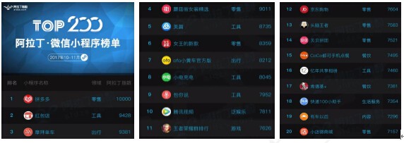 在阿拉丁公布的 10 月- 11 月小程序TOP200 榜單中,快遞 100 小助手已經(jīng)進(jìn)入TOP20,排名第 18 位。
