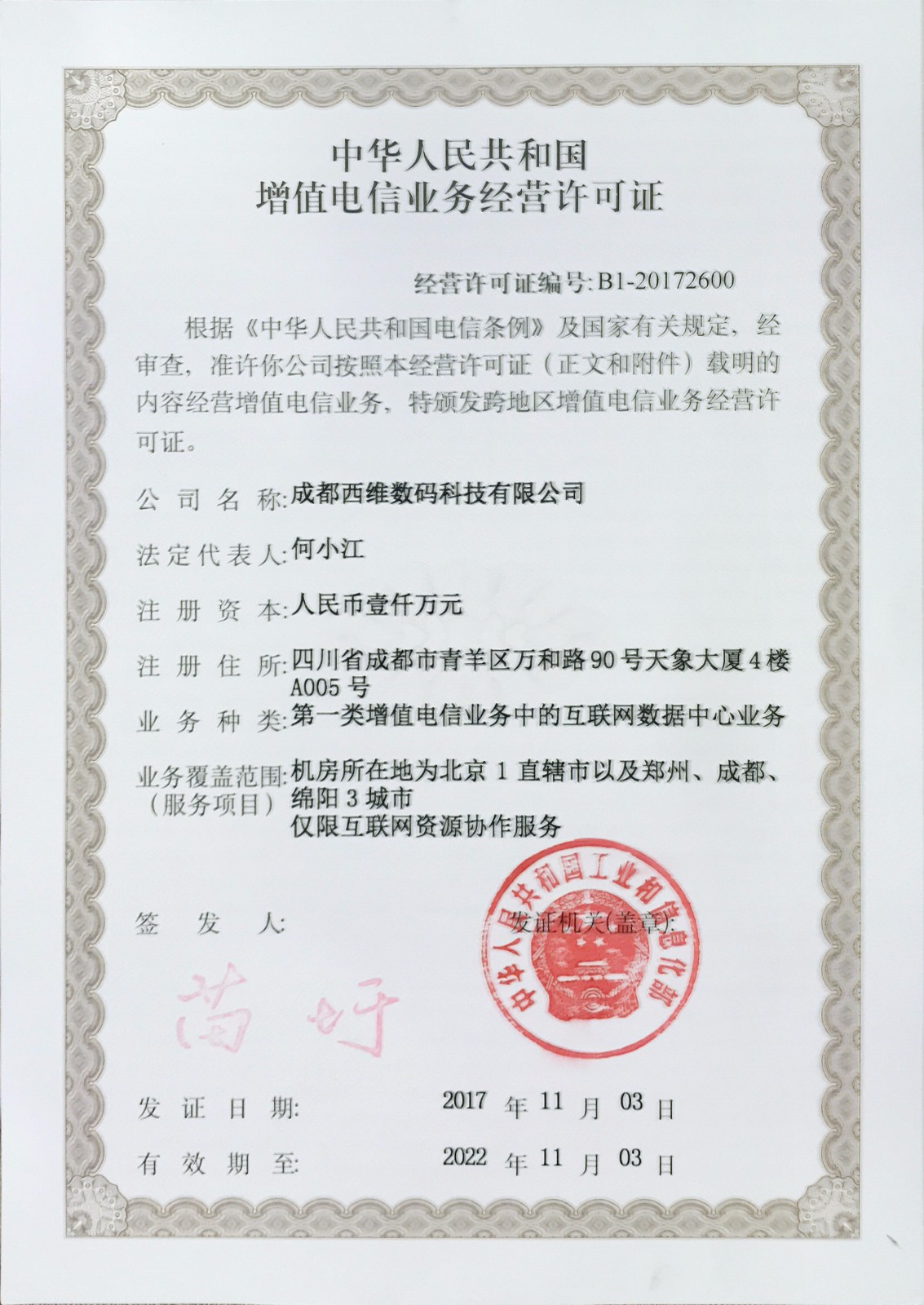 近日,在工業(yè)和信息化部的監(jiān)督下,西部數(shù)碼順利通過各項嚴(yán)格考評,成功取得互聯(lián)網(wǎng)資源協(xié)作業(yè)務(wù)許可(即:云牌照),這是繼本年七月份,在中國電子工業(yè)尺度化技術(shù)協(xié)會信息技術(shù)辦事分會(ITSS)“云計算辦事能力”評估之后,西部數(shù)碼在云辦事能力方面的又一次升華。