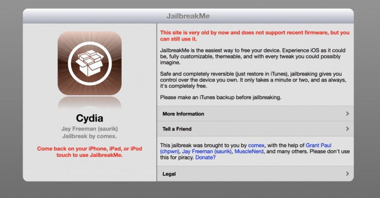 雷鋒網(wǎng)報道,幾年之前,買了iPhone之后最重要的事情之一就是給它越獄。這個黑客和蘋果之間的貓鼠游戲一度非常好玩,以非官方app商店Cydia為首的一眾越獄后才能使用的開源軟件們給iPhone帶來了令人驚訝的新功能和可定制性。有一些軟件包甚至是只能在越獄后的手機上運行的。即便蘋果三令五申也擋不住他們越獄的熱情,并在成功后對蘋果嗤之以鼻。甚至當蘋果把越獄者告上法庭時,法庭的裁決也是“越獄行為自己是合法的”。