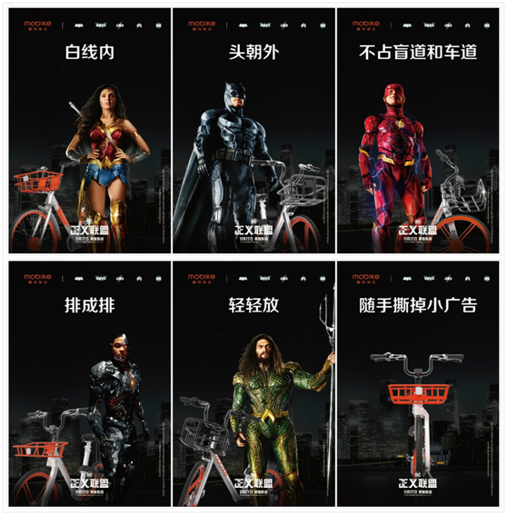 據(jù)悉,《正義聯(lián)盟》版摩拜單車已經(jīng)在全國(guó)多個(gè)城市出街。作為共享單車首創(chuàng)者和領(lǐng)導(dǎo)者,摩拜單車推出《共享單車文明停放倡議》”,旨在倡導(dǎo)廣大用戶文明使用和停放摩拜單車。這與《正義聯(lián)盟》的劇情和英雄故事有著深度的一致性:《正義聯(lián)盟》中的英雄們意識(shí)到“孤膽難救世,正義不獨(dú)行”。摩拜也希望廣大用戶可以文明使用和停放共享單車,每個(gè)人一點(diǎn)小小的“正義”,即可形成捍衛(wèi)城市秩序的英雄“聯(lián)盟”。