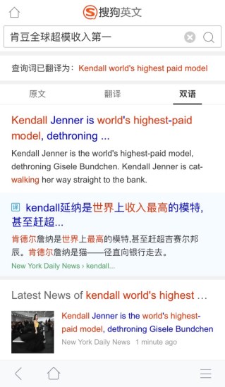 (圖:“肯豆全球超模收入第一”詞條的中英雙語(yǔ)頁(yè)面)