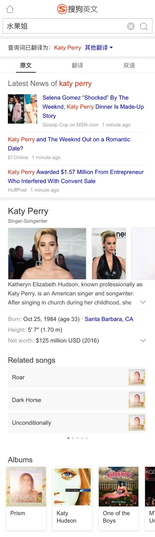 (圖:“Katy Perry(水果姐)”搜索結(jié)果頁(yè)聚合信息展示)