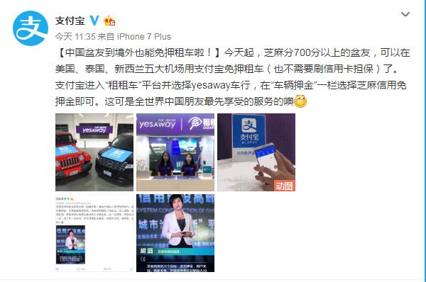 站長之家(Chinaz.com)11月27日消息:今天上午,支付寶官方頒布頒發(fā)芝麻分 700 分以上的伴侶,芝麻分 700 分以上的盆友,可以在美國、泰國、新西蘭五大機場用支付寶免押租車(也不需要刷信用卡擔保)了。