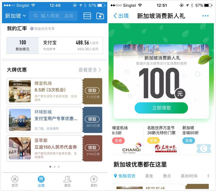 隨后的幾天,我在新加坡發(fā)現(xiàn)了更多和國內(nèi)相似的移動支付體驗。在中國游客圈中比較有名的餐館、商場以及機場免稅店,都支持支付寶付款并且,支付寶還提供了力度較大的優(yōu)惠活動,如果把所有的優(yōu)惠商家全踩一圈,能優(yōu)惠 600 元人民幣。