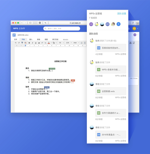WPS云協(xié)作是WPS+云辦公最亮眼的特色之一,旨在幫手企業(yè)完成“隨時(shí)、隨地、高效、安適”的辦公辦事信息化建設(shè),搭建跨平臺(tái)、跨設(shè)備、跨團(tuán)隊(duì)共享協(xié)作和協(xié)同辦公。基于云儲(chǔ)存和云計(jì)算技術(shù),WPS云協(xié)作最大的特色是完全開(kāi)脫“當(dāng)?shù)亍?,所有存?chǔ)在WPS云辦公的文件只存在于云端,不占用電腦或手機(jī)內(nèi)存。在WPS云協(xié)作中,企業(yè)內(nèi)部的團(tuán)隊(duì)成員可共同完成一份文檔的撰寫(xiě)和編纂,每位成員的編纂不但清晰可見(jiàn),并且所有版本都會(huì)實(shí)時(shí)自動(dòng)生存。