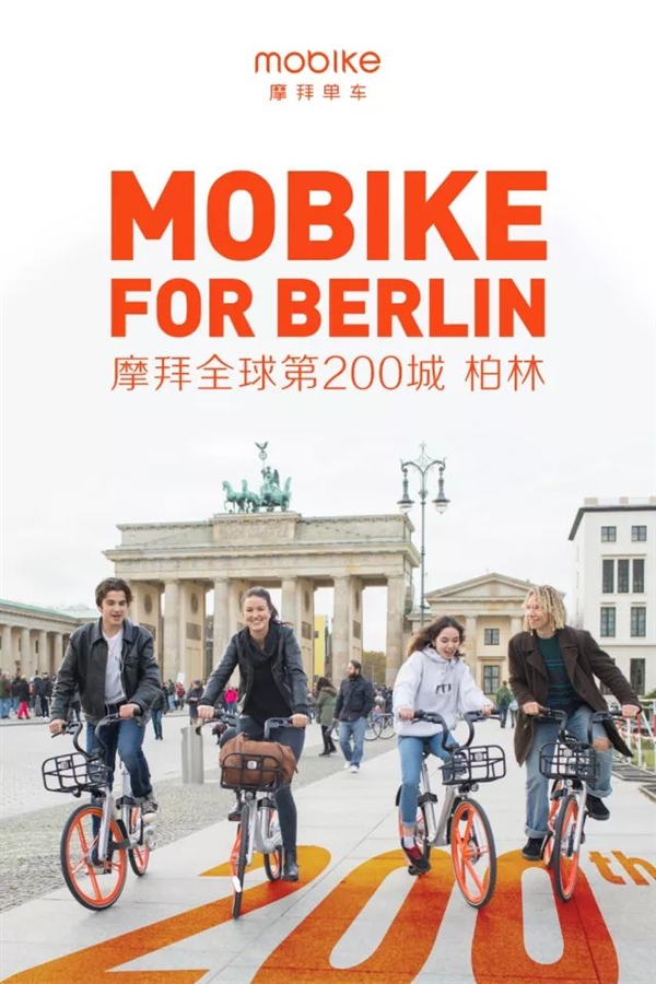 昨天( 11 月 21 日),摩拜單車(chē)頒布頒發(fā)在德國(guó)首都柏林投入運(yùn)營(yíng),這也是摩拜單車(chē)提供辦事的全球第 200 個(gè)城市,成為共享單車(chē)行業(yè)首個(gè)辦事全球 200 個(gè)城市的企業(yè)。