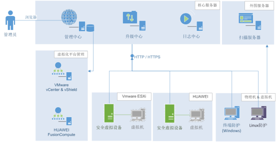 瑞星虛擬化系統(tǒng)安適軟件采用分布式的體系結(jié)構(gòu),整個防病毒體系是由五個彼此關聯(lián)的子系統(tǒng)組成:辦理中心、安適虛擬設備、日志中心、升級中心、查殺協(xié)作。各個子系統(tǒng)協(xié)同工作,,共同完成對整個虛擬化平臺的病毒防護工作,為企業(yè)級用戶的虛擬化系統(tǒng)提供全方位防病毒辦事。
