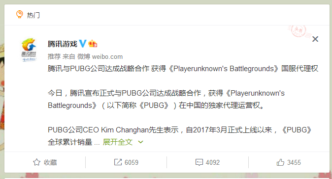站長之家(Chinaz.com) 11 月 22 日消息 喜歡吃雞游戲的小伙伴們有福了!今天,騰訊于官方正式頒布頒發(fā)與PUBG公司達(dá)成戰(zhàn)略合作,拿下了《Playerunknown's Battlegrounds》在中國的獨(dú)家代理運(yùn)營權(quán)。
