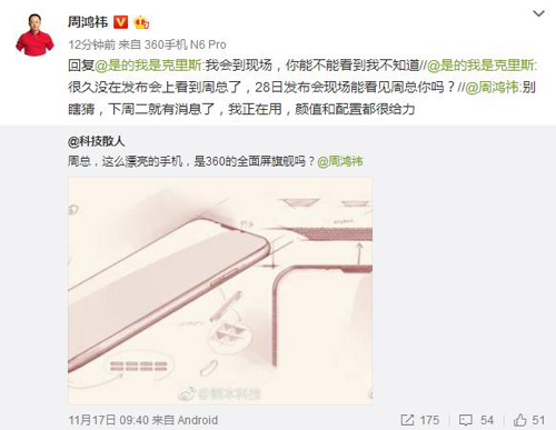 前不久, 360 公司董事長周鴻祎在微博不測泄露了下一代新品—— 360 手機N6