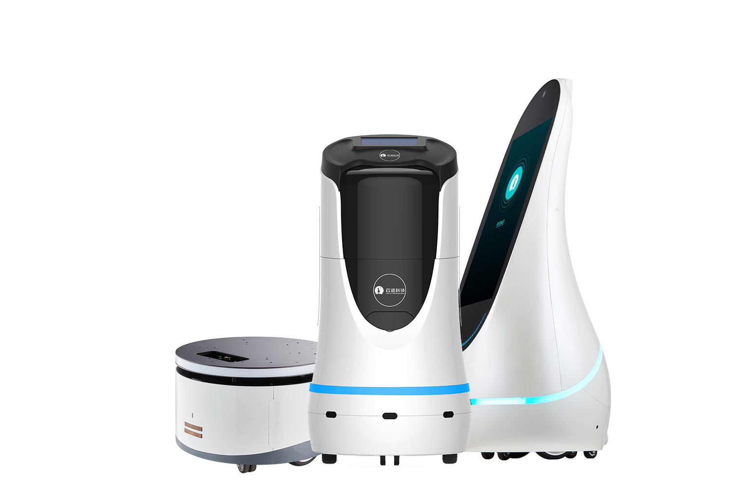 (圖1:云跡科技機器人全家福,左至右:水滴,潤,云帆)